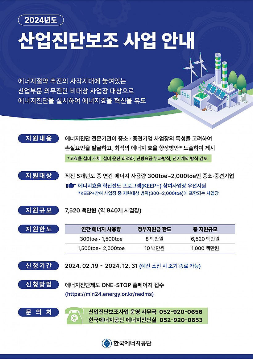 24년도 정부에서 전액무료 실시하는 에너지진단사업입니다.